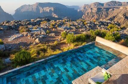 Por la tarde, ascenderemos por las espectaculares carreteras de montaña hasta llegar a Al Jabal Al Akhdar, el “Monte Verde”, famoso por sus terrazas de cultivo, sus rosaledas y las impresionantes vistas del Gran Cañón de Omán. Cena y alojamiento en el hotel de montaña, rodeados por un paisaje de ensueño.